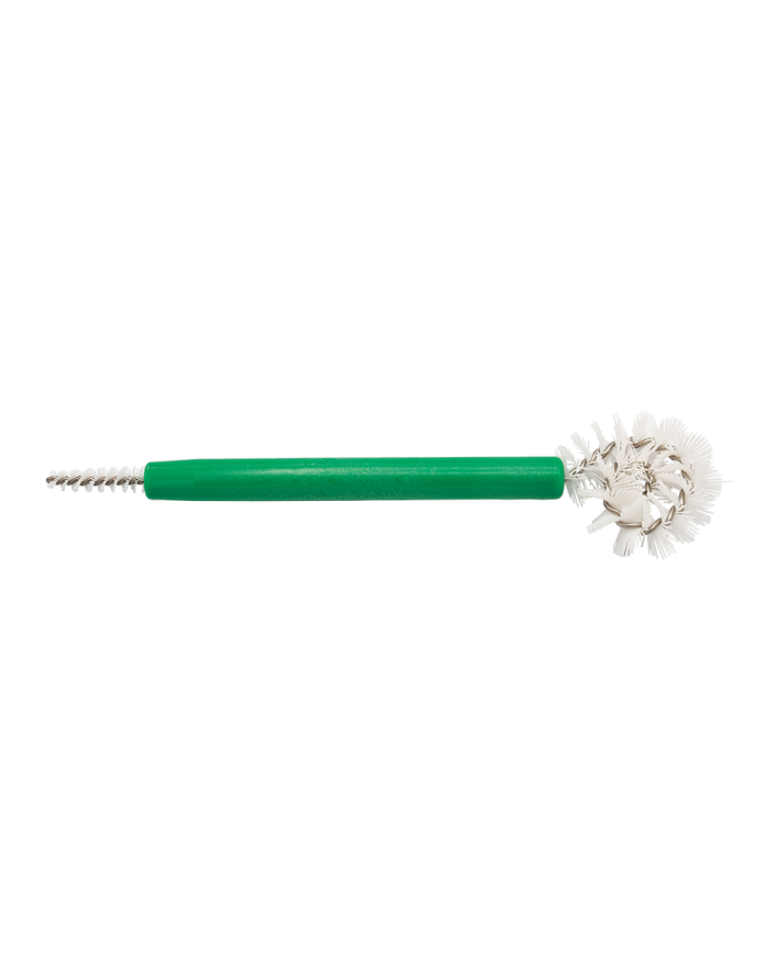 Cepillo ergonométrico cerdas de acero con mango de plástico, ideal para limpiar instrumentos de gran calibre.