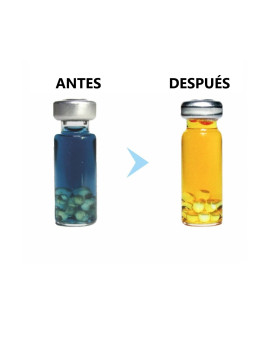 Cambio claro de color de azul a amarillo luego de proceso exitoso.